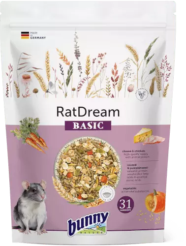 La soluzione nutrizionale ottimale per i ratti con proteine animali di alta qualità da formaggio e pollo, preziose proteine da semi di lino e zucca e sostanze vitali attive da verdure. La ricetta equilibrata sostiene il comportamento naturale e promuove la salute dei ratti.