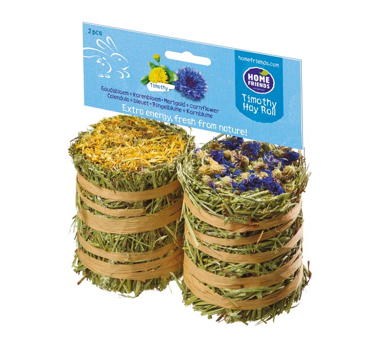 Home Friends – Roll di fieno Timothy con Calendula e Fiordaliso – 2 pezzi da 200 g ciascuno